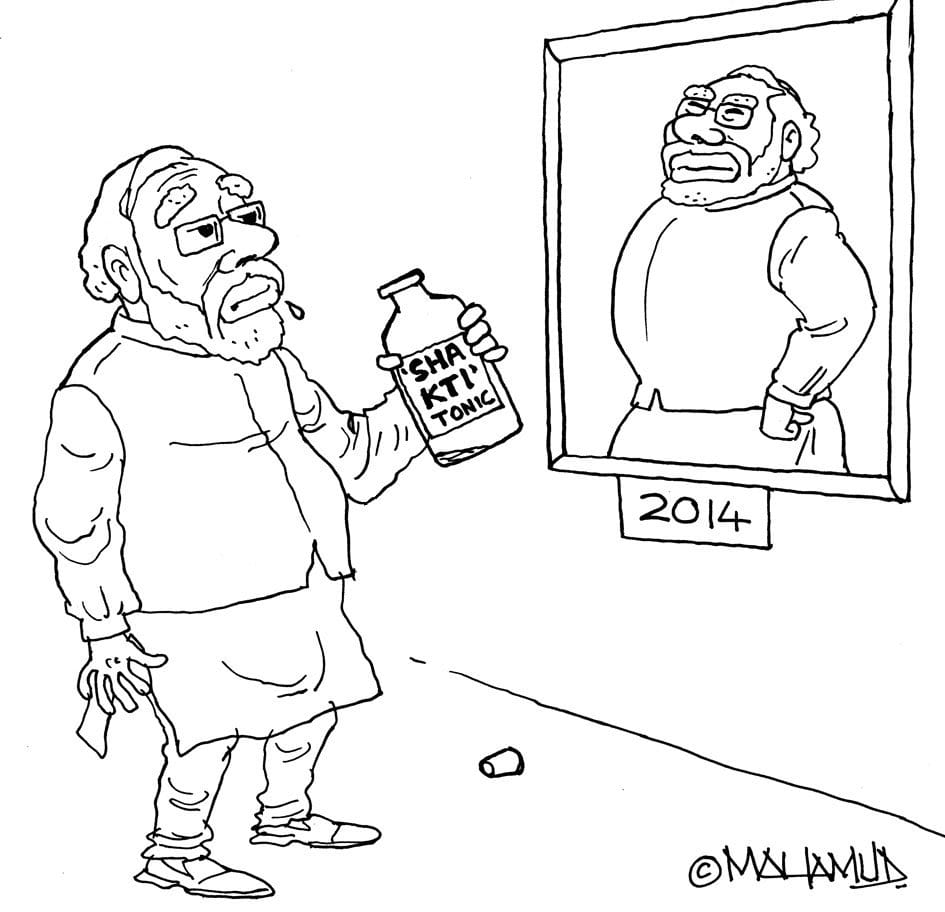 महमूद ने ‘दुर्बल’ प्रधानमंत्री नरेंद्र मोदी को शक्ति टॉनिक पीते हुए दर्शाते हैं. लोकसभा चुनाव से पहले टॉनिक पीकर प्रधानमंत्री मज़बूत हो जायेंगे.