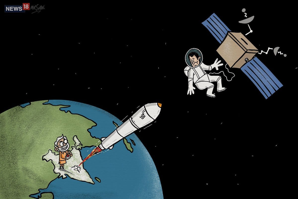 मीर सुहैल प्रधानमंत्री नरेंद्र मोदी को ए-सैट मिसाइल परीक्षण के माध्यम से कांग्रेस प्रमुख राहुल गांधी पर निशाना साधते हुए दिखाया है. राहुल गांधी ने हाल में ही न्यूनतम आय गारंटी योजना की घोषणा कर राजनीतिक हलकों में खलबली मचा दी है.