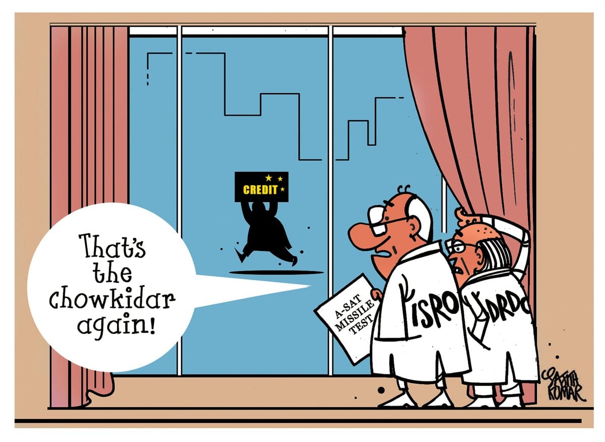 प्रधानमंत्री नरेंद्र मोदी के ए-सैट घोषणा की बुधवार को प्रकाश डालते हुए साजिथ कुमार सुझाव देते हैं कि ‘मिशन शक्ति ’की सफलता के लिए चौकीदार ने श्रेय ले लिया है. जबकि वास्तव में इसका श्रेय डीआरडीओ और इसरो वैज्ञानिकों को जाता है.