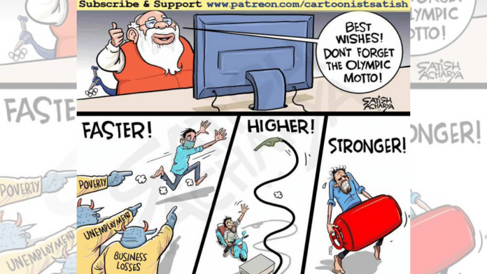आज के फीचर कार्टून में सतीश आचार्य टोक्यो ओलंपिक को नरेंद्र मोदी सरकार की चुनौतियों से जोड़ रहे हैं.