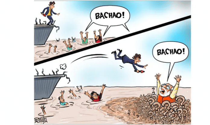 आज के चित्रित कार्टून में, सतीश आचार्य ने पीएम नरेंद्र मोदी की गुजरात के मोरबी यात्रा की कवरेज के लिए टीवी समाचार चैनलों की आलोचना कर रहे हैं, जहां रविवार को एक निलंबन पुल के गिरने से कम से कम 135 लोगों की जान चली गई.