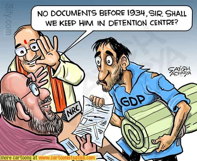 सतीश आचार्य दर्शाते हैं कि मोदी सरकार नागरिकता (संशोधन) विधेयक 2019 को पारित करने की कोशिश में व्यस्त है और भारत की अर्थव्यवस्था निराशाजनक रूप से निम्न स्तर पर है.