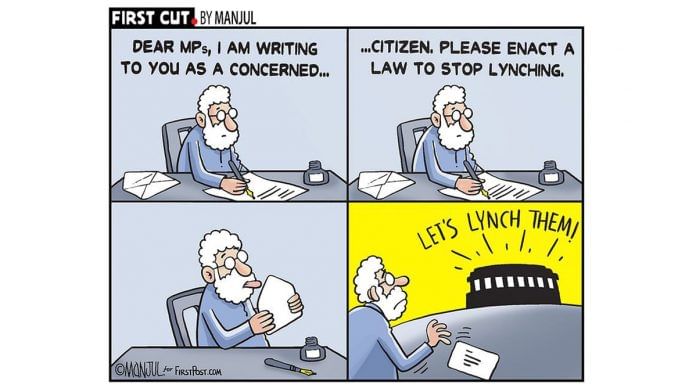 आज के फीचर कार्टून में मंजुल हैदराबाद रेप और मर्डर केस में उन आरोपियों की लिंचिंग को लेकर सांसदों पर तंज कसते हैं, जबकि सामाजिक कार्यकर्ता लिंचिंग को रोकने के लिए कानून बनाने की मांग करते रहे हैं.