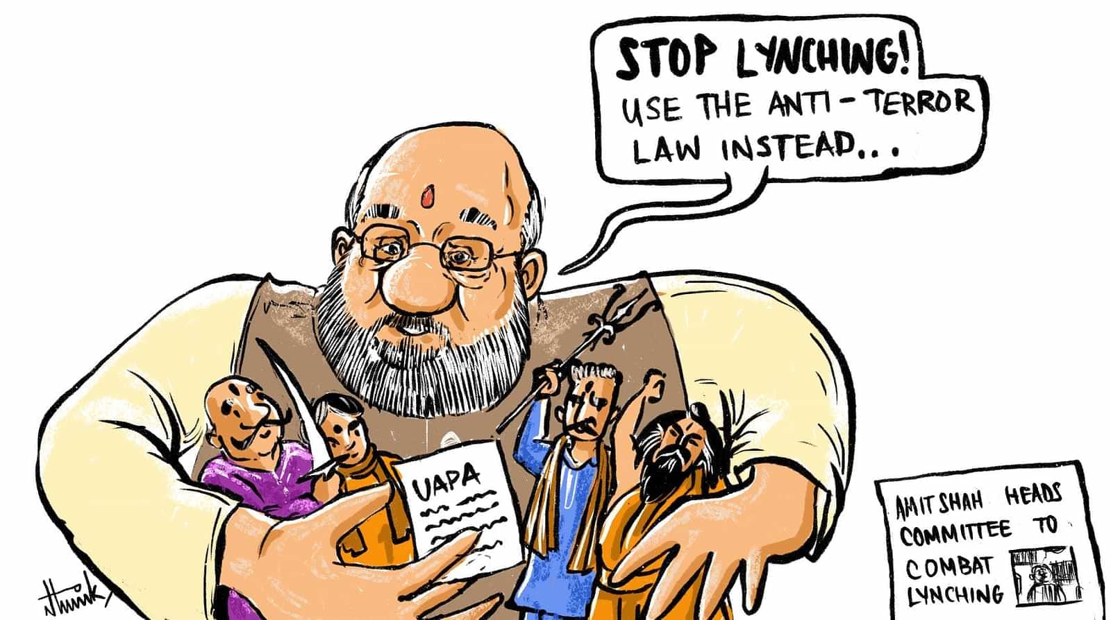 कृत्तिका सुसरला गृहमंत्री अमित शाह पर तंज करती हैं. मॉब लिंचिंग का मुकाबला करने के वाले संगठन का मुखिया कौन होगा. कार्टूनिस्ट का सुझाव है कि शाह का अतीत विवादास्पद है, वह शायद इस पद के लिए सही विकल्प नहीं हैं.
