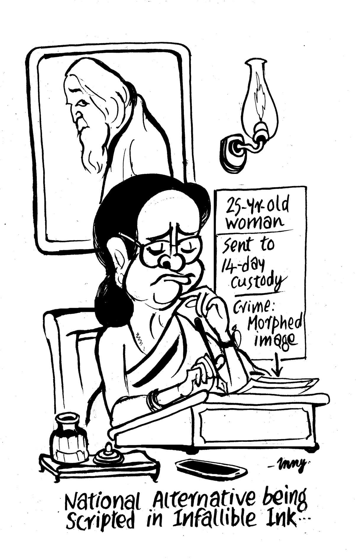 ईपी उन्नी पश्चिम बंगाल में 25 वर्षीय भाजपा कार्यकर्ता प्रियंका शर्मा की 14 दिन की हिरासत पर कटाक्ष करते हैं. प्रियंका शर्मा को स्थानीय पुलिस ने पश्चिम बंगाल की मुख्यमंत्री ममता बनर्जी की रूपांतरित की गयी तस्वीर साझा करने के लिए गिरफ्तार किया था.