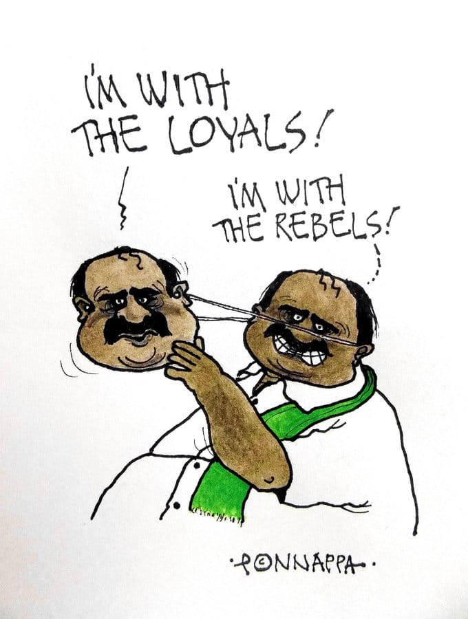 नाला पोनप्पा कर्नाटक के मुख्यमंत्री एच.डी. कुमारस्वामी की दुविधा पर कटाक्ष करते हैं. उनको मंत्रिमंडल का विस्तार करना है या फिर फेरबदल करना है.