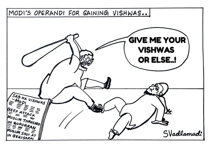 पिछले सप्ताह मुसलमानों के खिलाफ हुई हिंसा के उदाहरणों का हवाला देते हुए स्वाथि वदलामुडी प्रधानमंत्री मंत्री के ‘सबका साथ, सबका विकास, सबका विश्वास’ के नारे पर आक्रोश प्रकट करती हैं.