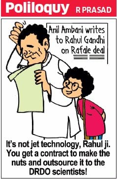 द इकोनॉमिक टाइम्स में आर.प्रसाद ने राफेल सौदे के संबंध में व्यक्तिगत हमलों पर गहरा गुस्सा व्यक्त करते राहुल गांधी को रिलायंस इंफ्रास्ट्रक्चर के पत्र का मजाक उड़ाया है। समूह के प्रमुख अनिल अंबानी ने टिप्पणी की है भारतीय कांग्रेस पार्टी,गुमराह ,मतभ्रष्ट,गलत सूचित है ।