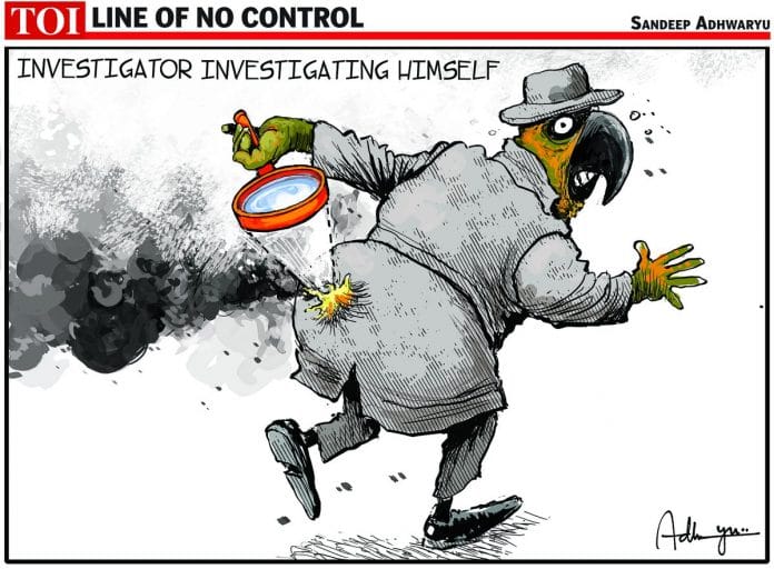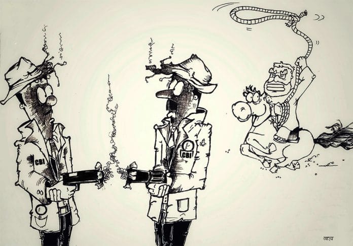 संदीप अध्वर्यु दर्शाते है कि सीबीआई पहले से ही कैद किये गए ‘तोते’ की तरह काम कर रही हैं. इस कार्टून में स्पेशल डायरेक्टर के खिलाफ लगे भ्रष्टाचार के आरोप का जिक्र करते हुए बताते हैं कि सीबीआई ने खुद के ऊपर ही जांच बिठा खुद को कटघरे में खड़ा कर लिया है.