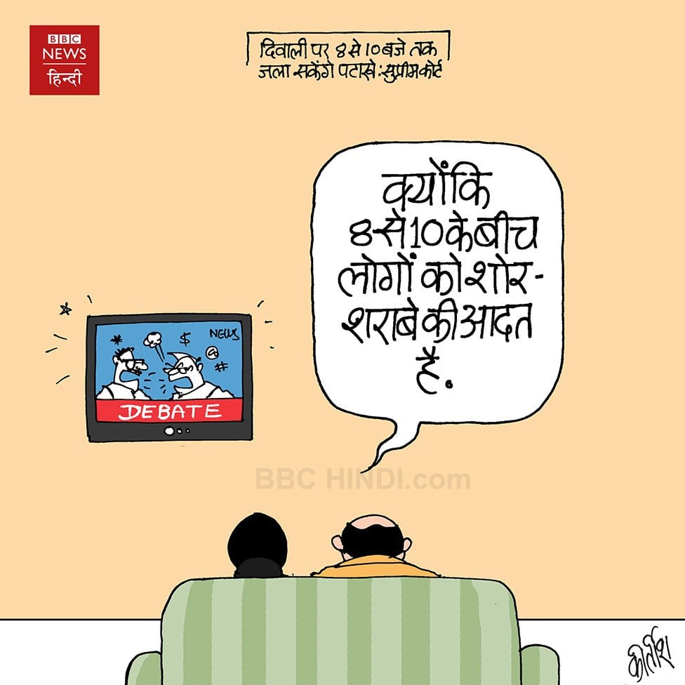 कीर्तीश भट्ट बीबीसी हिंदी में सुप्रीम कोर्ट के फैसले को चित्रित करते हैं. दिवाली के दिन रात 8 बजे से 10 बजे तक पटाखे जला सकेंगे.