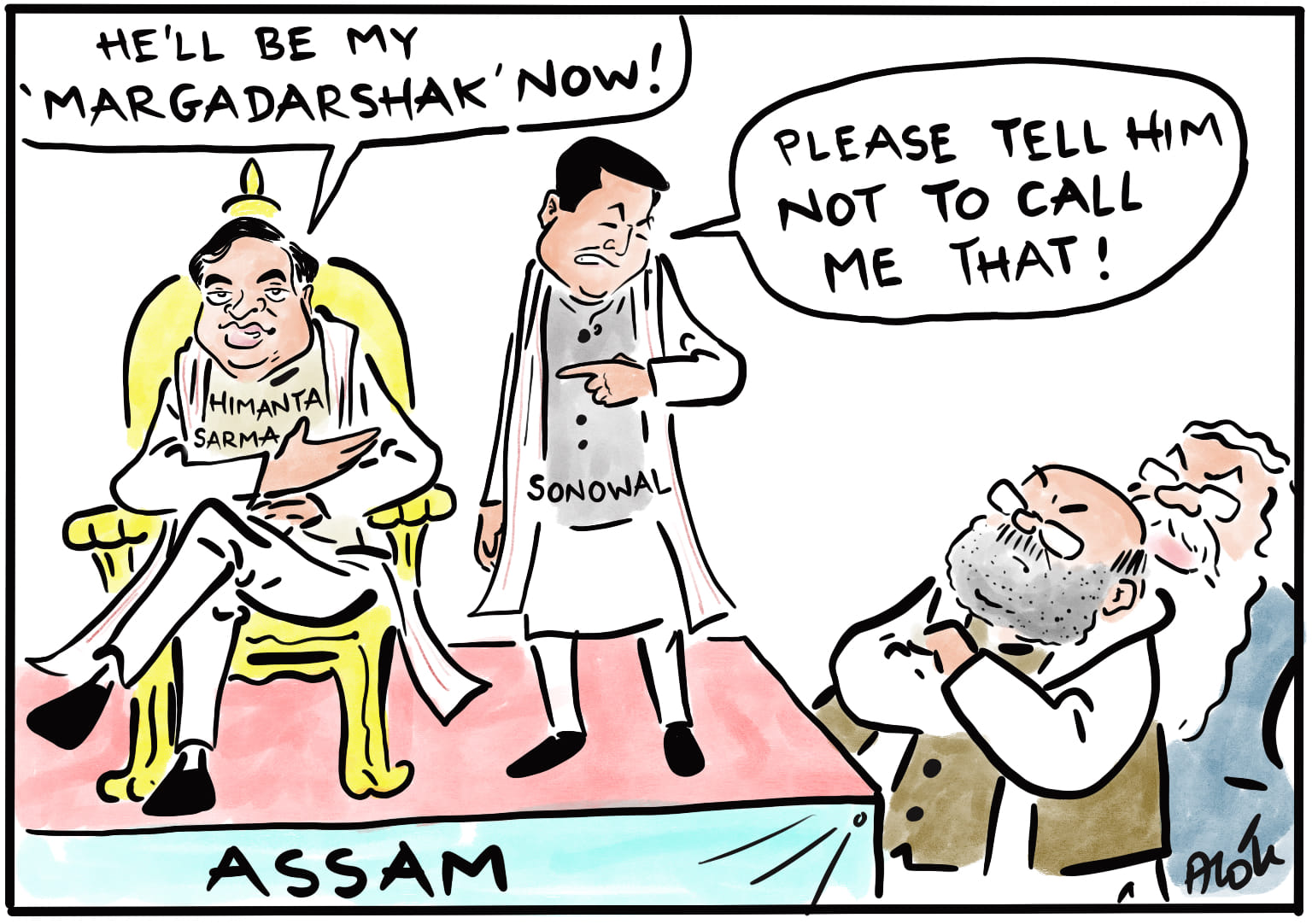 हिमंत बिस्वा सरमा को सर्बानंद सोनोवाल के स्थान पर असम का मुख्यमंत्री पद दिलाने के बाद आलोक निरंतर भाजपा पर अपने नेताओं को (मार्गदर्शक) बनाकर नेताओं को दरकिनार करने पर तंज करते हैं.