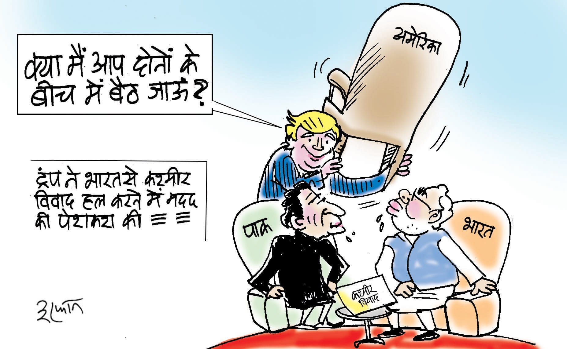 इरफान ने दर्शाया कि जब भारत और पाकिस्तान के बीच कश्मीर मुद्दे पर बात आती है, तो दोनों के बीच तीसरा व्यक्ति आ जाता है. जैसे की हाल ही में ट्रंप ने कहा था कि प्रधानमंत्री नरेंद्र मोदी ने उनसे कश्मीर मुद्दे पर मध्यस्थता करने की बात कही थी.