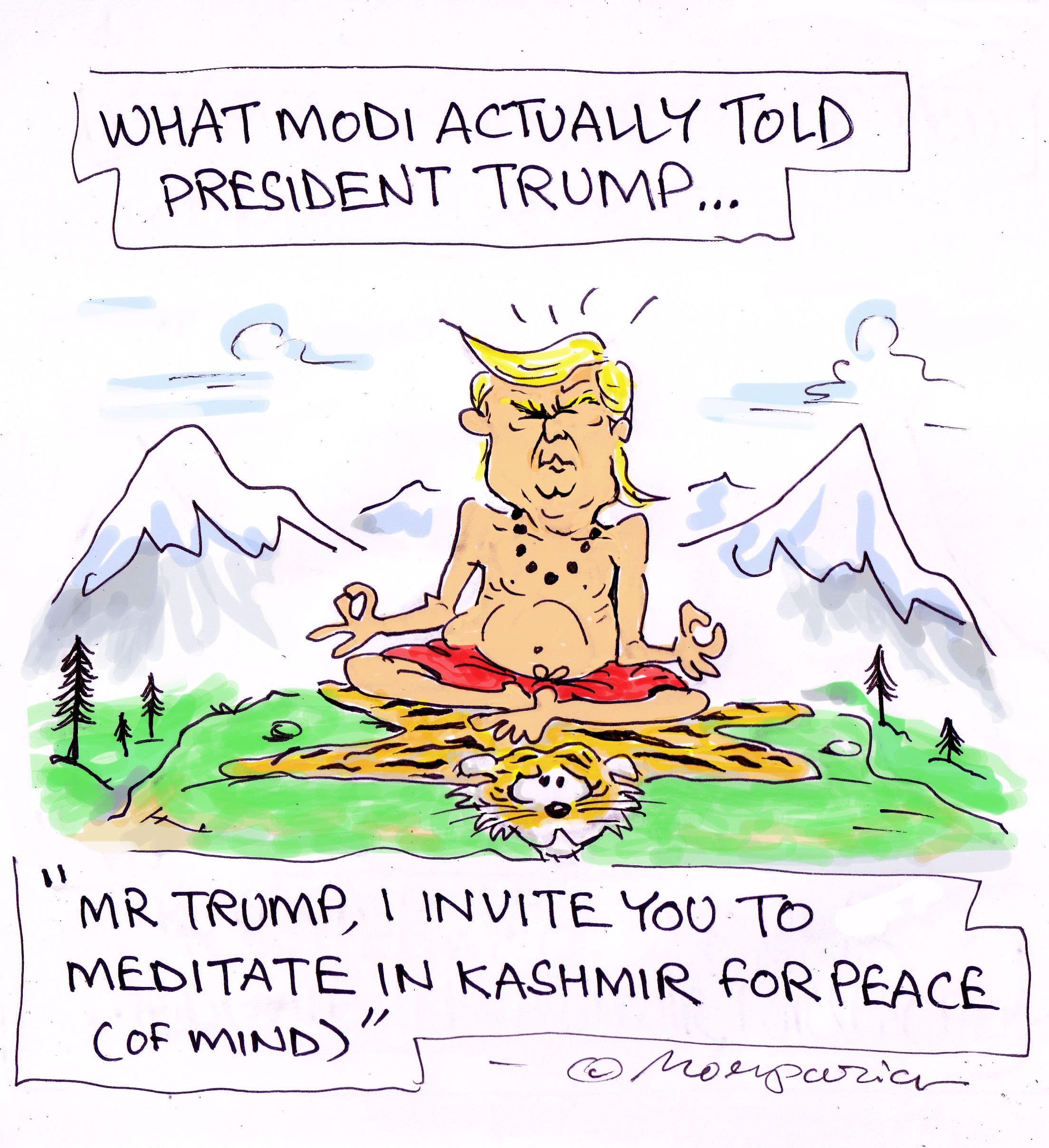 हेमंत मोरपारिया अमेरिकी राष्ट्रपति डोनाल्ड ट्रंप और प्रधानमंत्री नरेंद्र मोदी के बीच कश्मीर मुद्दे पर पर क्या बात हुई थी इस पर आध्यात्मिक विचार को दर्शाते हैं.