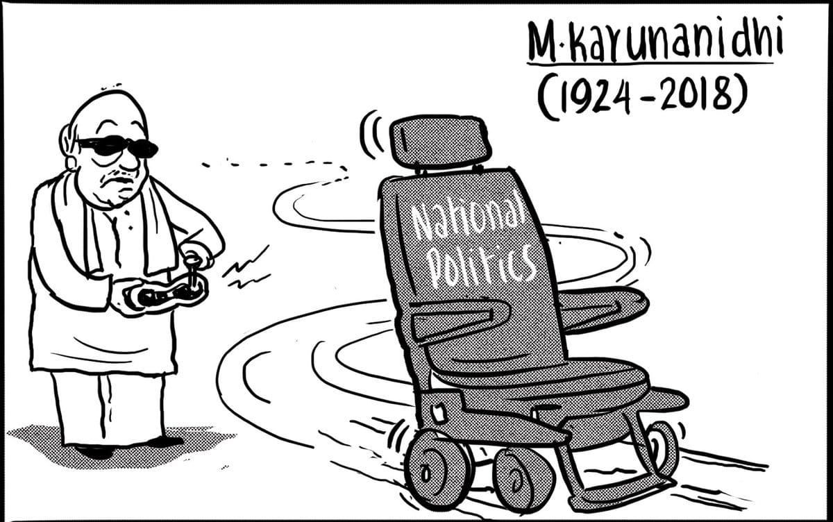 कार्टूनिस्ट गोकुल गोपालकृष्णन करुणानिधि को श्रद्धांजलि अर्पित करते हैं जिन्होंने भारतीय राजनीति में एक समृद्ध विरासत छोड़ी है।
