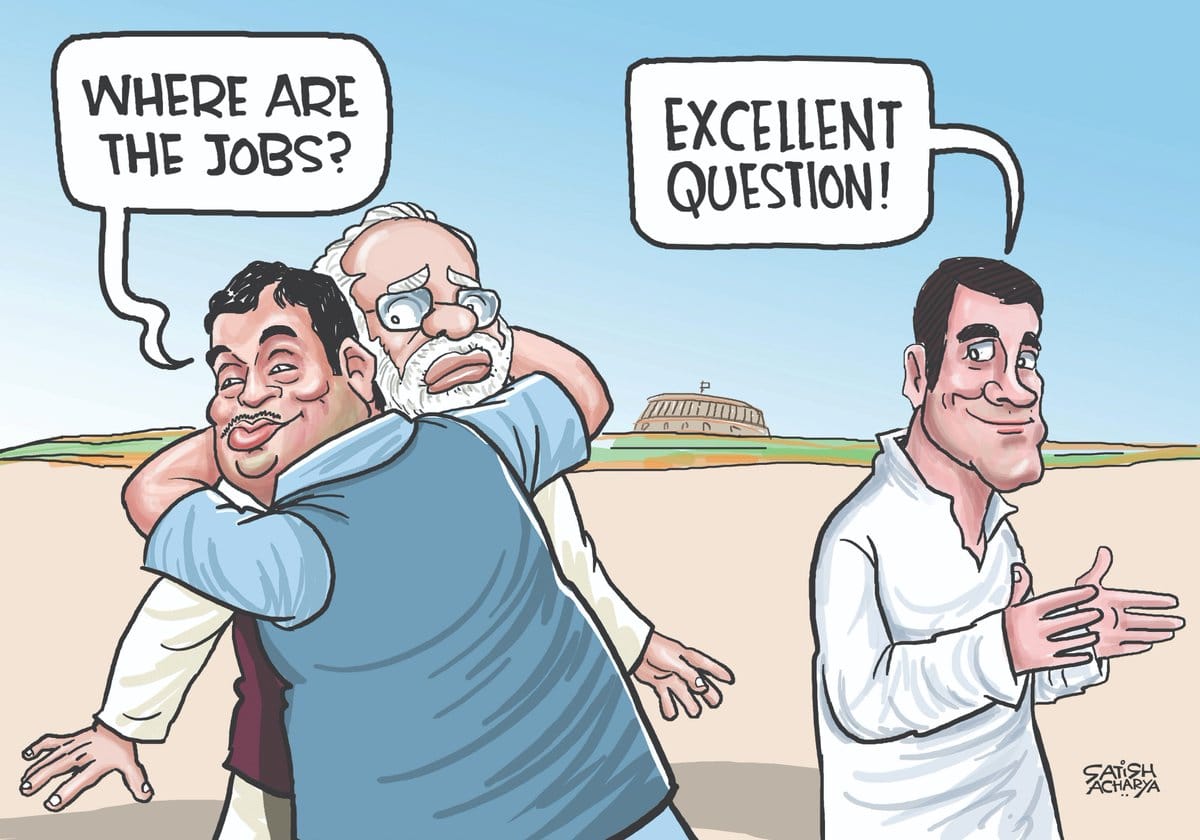भारत में रोजगार पर केंद्रीय मंत्री नितिन गडकरी की चिंता के जवाब में, राहुल गांधी ने सोमवार को “उत्तम प्रश्न ” ट्वीट किया। सतीश आचार्य ने अपने अंदाज़ में मज़ाक उड़ाया है।