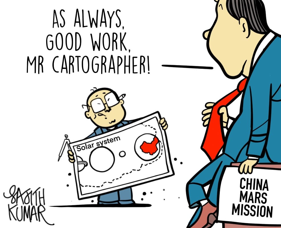 साजिथ कुमार चीन पर तंज कसते हैं – चीन विश्व में अपनी छाप छोड़ रहा है मानचित्र से लेकर अपने नए मंगल मिशन तक जो कि गुरुवार को लॉन्च किया गया था.