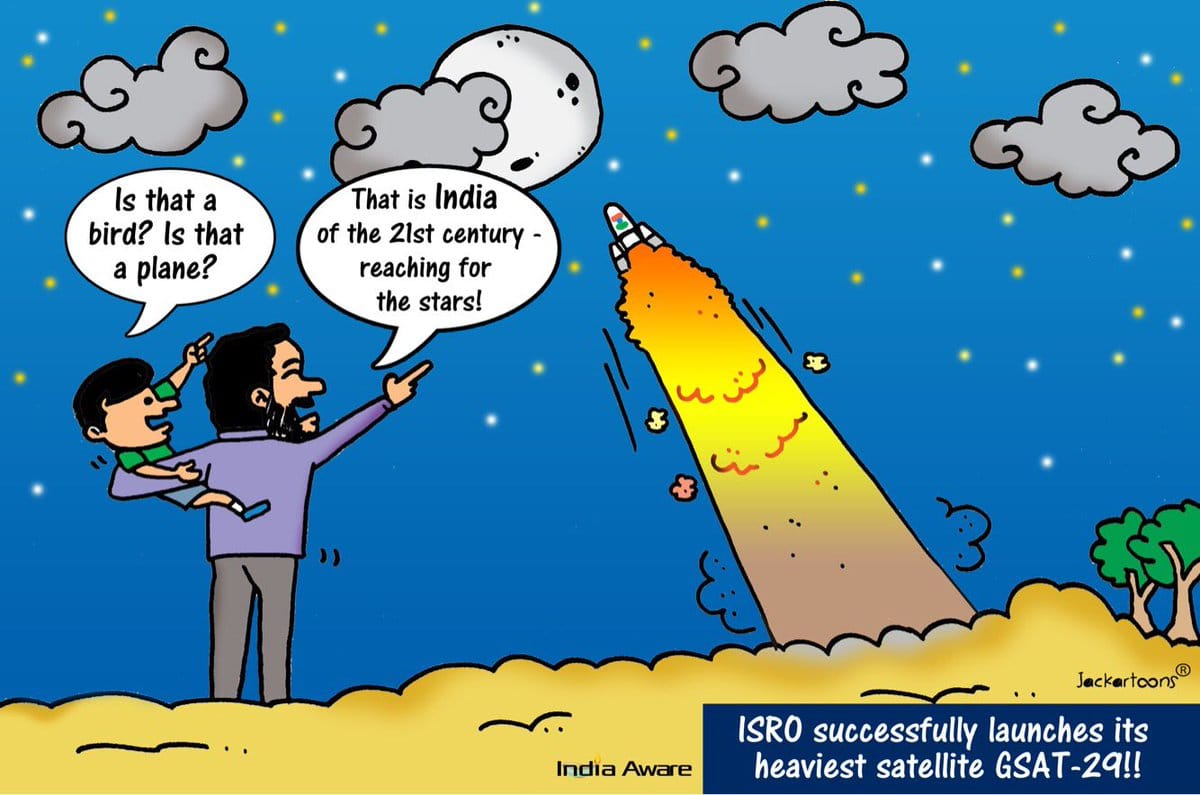 जैककार्टून्स जीसैट-29 के सफल परीक्षण पर ख़ुशी मनाते हैं.