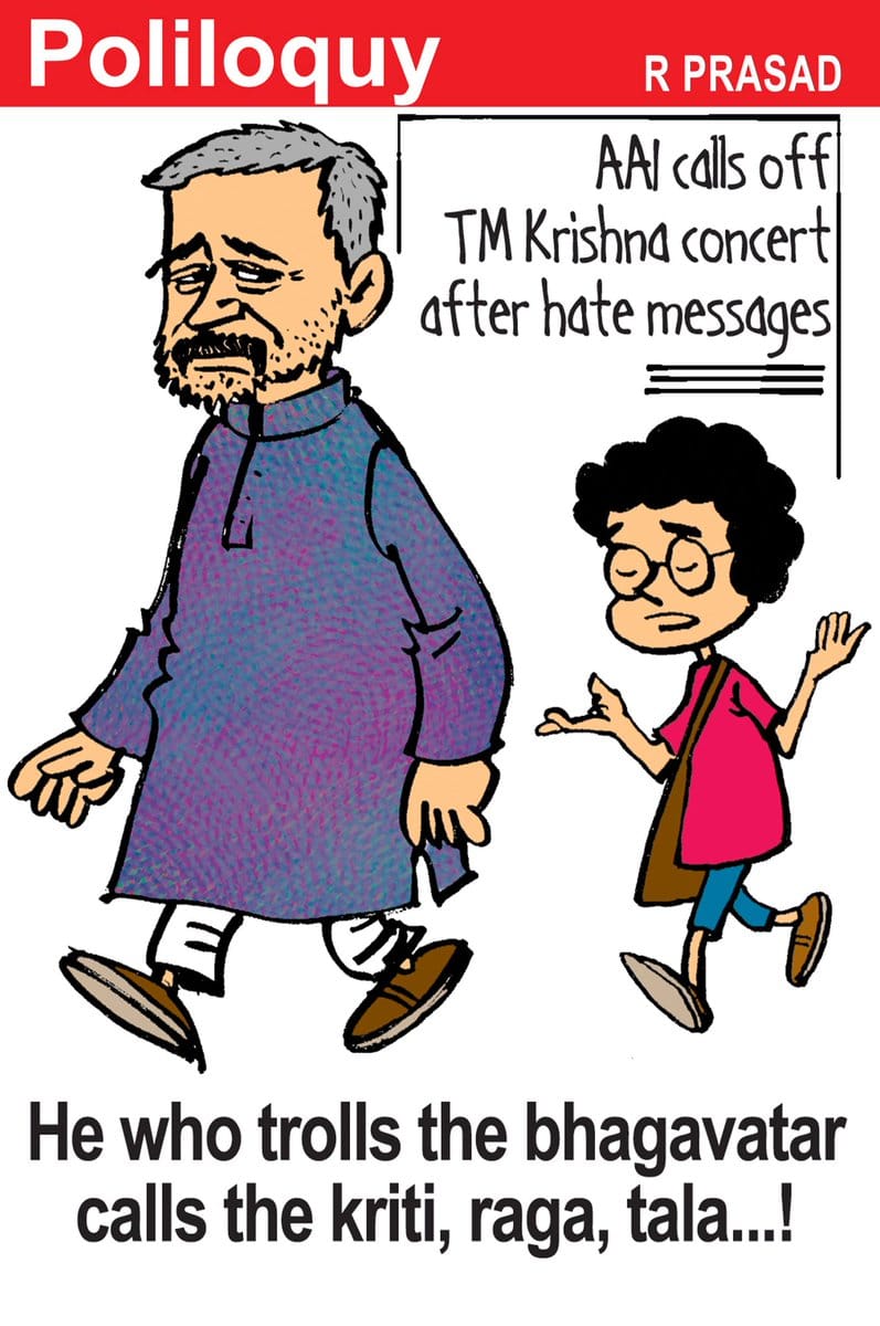 इकोनॉमिक टाइम्स में आर प्रसाद भी टीएम कृष्णा के संगीत कार्यक्रम के रद्द होने पर कटाक्ष करते हैं.