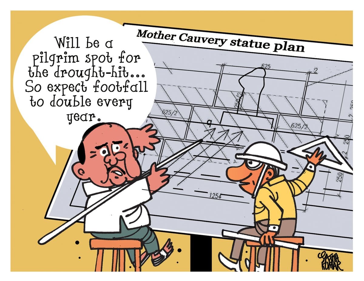 साजिथ कुमार कर्नाटक में कांग्रेस-जेडीएस सरकार द्वारा कावेरी माता की प्रतिमा बनाने के निर्णय पर तंज करते हैं.