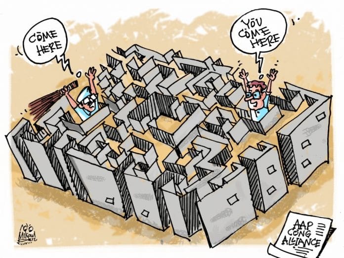 मीका अज़ीज़ लोकसभा चुनाव में आम आदमी पार्टी और कांग्रेस के गठबंधन के अनिश्चितिता पर तंज करते हैं. भाजपा को हराने के लिए आप कांग्रेस के साथ गठबंधन करना चाहती है.