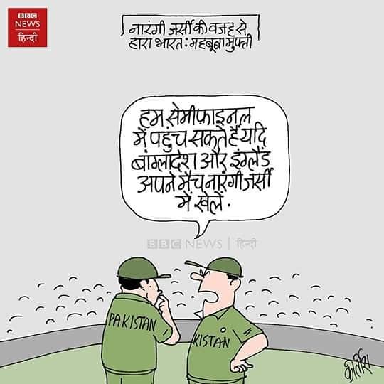 पीडीपी की मुखिया महबूबा मुफ़्ती ने भारत के क्रिकेट टीम की जर्सी के कलर को लेकर ट्वीट किया था. बीबीसी न्यूज़ हिंदी में कीर्तीश भट्ट ने पाकिस्तान को विश्व कप के सेमीफ़ाइनल में अपनी जगह दूसरों पर भरोसा करते हुए दिखाया है.
