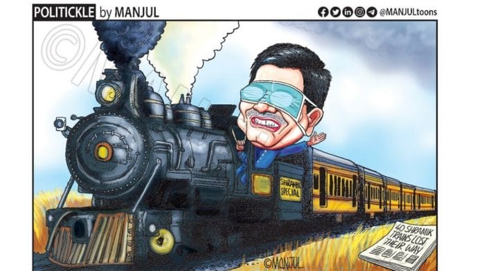 आज के फीचर कार्टून में मंजुल केंद्रीय रेल मंत्री पीयूष गोयल पर निशाना साध रहे हैं कि रेलगाड़ियां अपनी दिशा खो रही है.