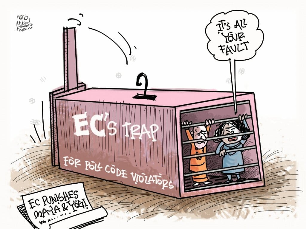 बीबीसी हिंदी में कीर्तीश भट्ट चुनाव आयोग पर व्यंग करते हैं. चुनाव आयोग ने भड़काऊ बयान देने के मामले का संज्ञान लेते हुए उत्तर प्रदेश के मुख्यमंत्री योगी आदित्यनाथ को तीन दिन और बहुजन समाज पार्टी (बसपा ) की अध्यक्ष मायावती को दो दिन चुनाव प्रचार पर रोक लगा दी है.