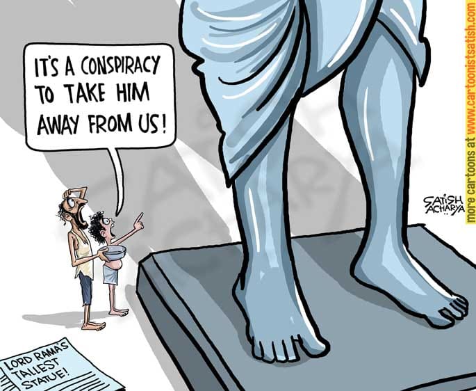 उत्तर प्रदेश में भगवान राम की सबसे ऊंची मूर्ति बनाने की बात ने ज़ोर पकड़ लिया है. सतीश आचार्य ने इसे आम आदमी के विश्वास को उससे दूर करने की साजिश बताया है.