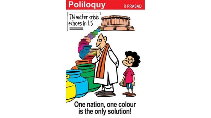 आज के कार्टून में आर प्रसाद देश में पानी के संकट की ओर ध्यान आकर्षित करते हैं और संकेत देते हैं कि इस संकट को केवल ‘भगवा’ ही रोक सकता है.