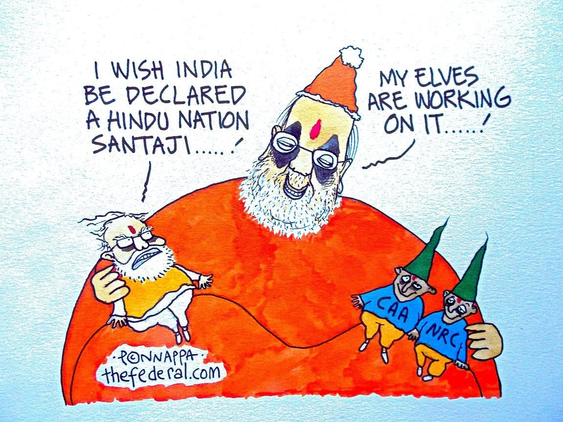 नाला पोनप्पा भी सीएए और एनआरसी पर तंज कसते हैं और सुझाव देते हैं कि भारत हिंदू राष्ट्र में बदलने के लिए तैयार है.