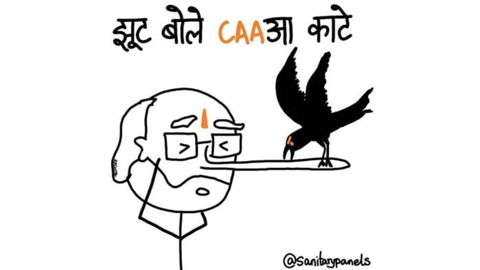 आज के फीचर कार्टून में रचिता सीएए-एनआरसी विरोध प्रदर्शन को दर्शाती हैं. विरोध का सामान करने के बाद प्रधानमंत्री नरेंद्र मोदी ने कहा कि एनआरसी की चर्चा हुई ही नहीं. बहुत से लोगों ने प्रधानमंत्री नरेंद्र मोदी, गृहमंत्री अमित शाह समेत मंत्रिमंडल के मंत्रियो को झूठा होने का आरोप लगाया, क्योंकि इन लोगों में पैन इंडिया एनआरसी की बात की थी.