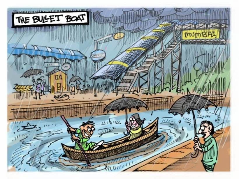 द इंडियन एक्सप्रेस में मीका अज़ीज़ ने मुंबई की स्थिति को दर्शाया है, जहां पर लगातार बारिश से शहर में बाढ़ आ गई है। इस वर्ष मुंबई में सामान्य वर्षा से 95 प्रतिशत अधिक दर्ज की गयी है ।(बुलेट बोट ,मुंबई )