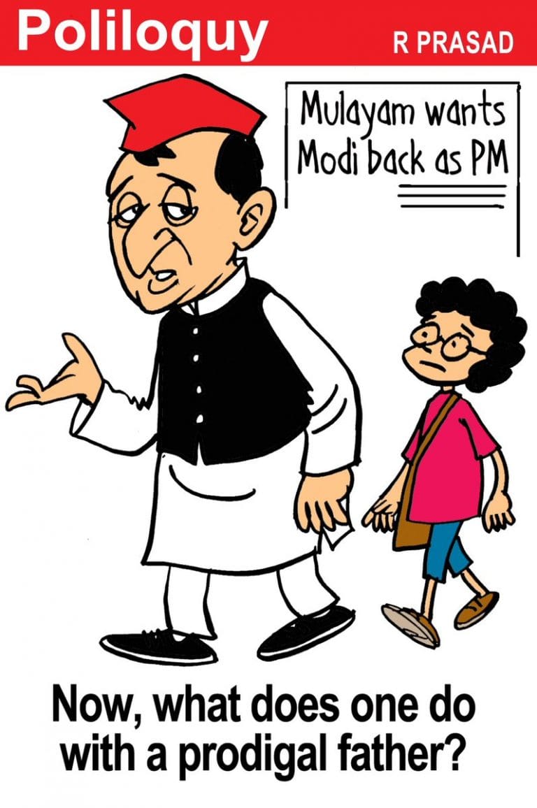 मुलायम सिंह यादव द्वारा नरेंद्र मोदी के दोबारा प्रधानमंत्री बनने की इच्छा जताने पर विपक्ष के नेता और समाजवादी पार्टी अध्यक्ष अखिलेश सिंह यादव के राजनीतिक भविष्यवाणी पर व्यंग करते आर प्रसाद.
