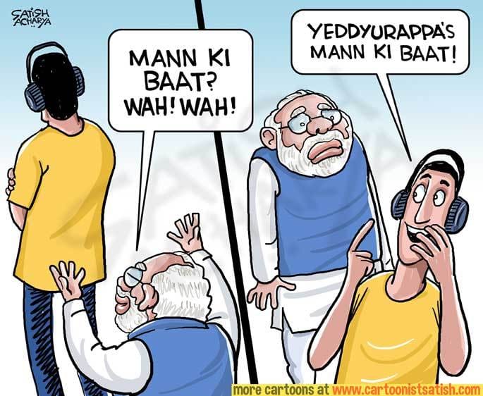 कर्नाटक के मुख्यमंत्री कुमारास्वामी द्वारा जारी किए गए ऑडियो टेप जिसमें पूर्व मुख्यमंत्री येदियुरप्पा विधायकों को अपनी ओर मोड़ने पर व्यंग करते सतीश आचार्य.