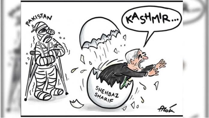 आज के विशेष रूप से प्रदर्शित कार्टून में, आलोक निरंतर पाकिस्तान के नवनिर्वाचित प्रधानमंत्री शहबाज शरीफ को अपने उद्घाटन भाषण में कश्मीर का मुद्दा उठाते हुए दिखाते हैं. कार्टूनिस्ट जताते हैं कि 70 वर्षीय नेता अपने देश के संकट की तुलना में घाटी के बारे में अधिक चिंतित थे.