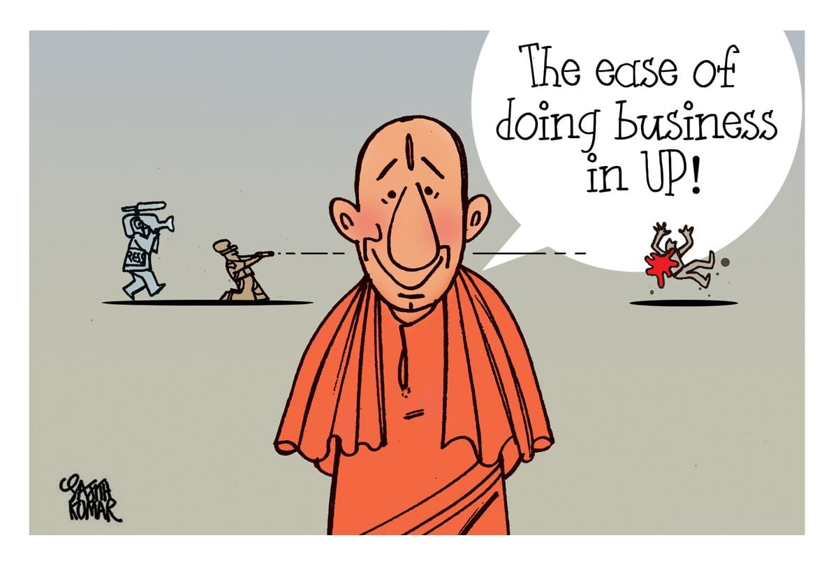 उत्तर प्रदेश पुलिस ने अलीगढ़ के हरदुआगंज में दो कथित अपराधियों के साथ एक मुठभेड़ फिल्म को सूट करने के लिए मीडिया को आमंत्रित किया है. साजिथ कुमार सीएम योगी आदित्यनाथ को उदाहरण देकर व्यंगातात्मक तरीके से दर्शाते है की यही ‘इज ऑफ़ डूइंग बिज़नेस ‘है.