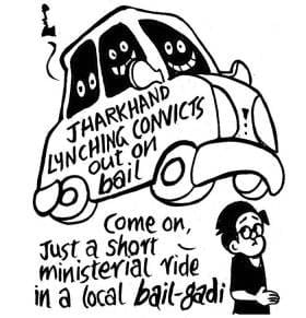द इंडियन एक्सप्रेस में इ.पी.उन्नी उसी विषय को लगातार उठाते हुए जिसमें जयंत सिन्हा की भूमिका को दिखते है.(झारखंड में लिंचिंग के अभियुक्त जमानत पर है और दिखाया गया है की अभियुक्त एक छोटा सा सफर मंत्री जी की गाड़ी पर कर लें)