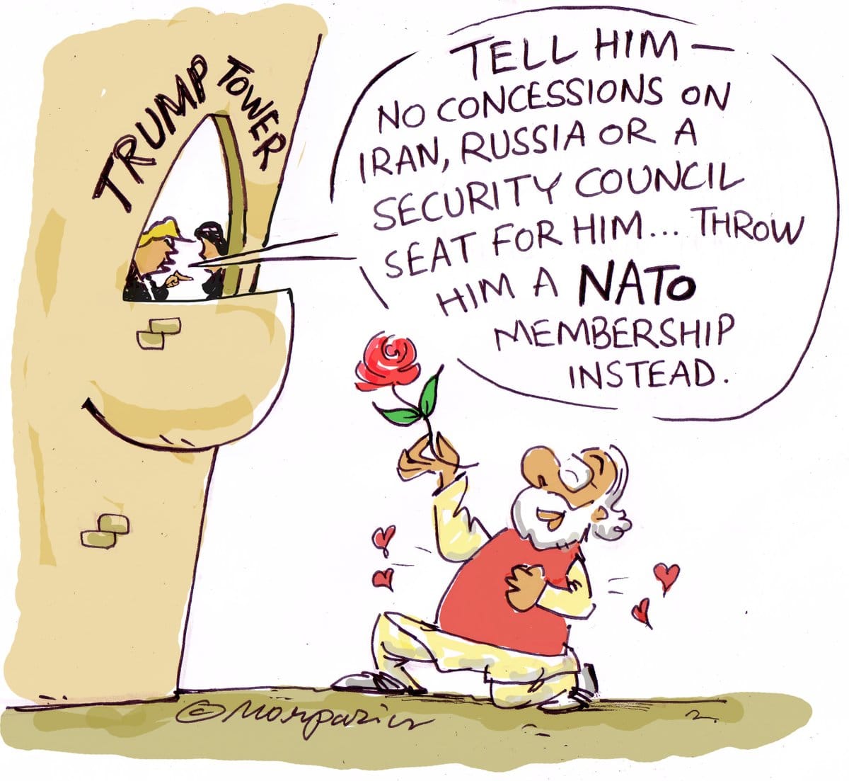 (उसको बोल दो की उसके लिए कोई रियायत ईरान ,रूस या सुरक्षा परिषद सीट नहीं हैं … उसके बदले उसको नाटो की सदस्यता से निकल दो)