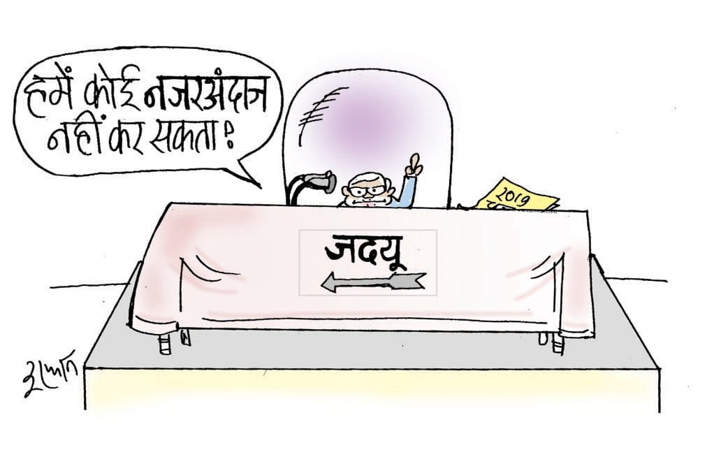कार्टूनिस्ट इरफान ने जेडी (यू) के नेता नीतीश कुमार के 2019 के आम चुनावों से पहले सहयोगी बीजेपी के साथ सीट साझा करने के सौदे का मज़ाक बनाया है । 12 जुलाई को पटना में एक संभावित बैठक में नीतीश कुमार और अमित शाह के बीच सीट साझा करने के समझौते पर चर्चा हो सकती हैं।