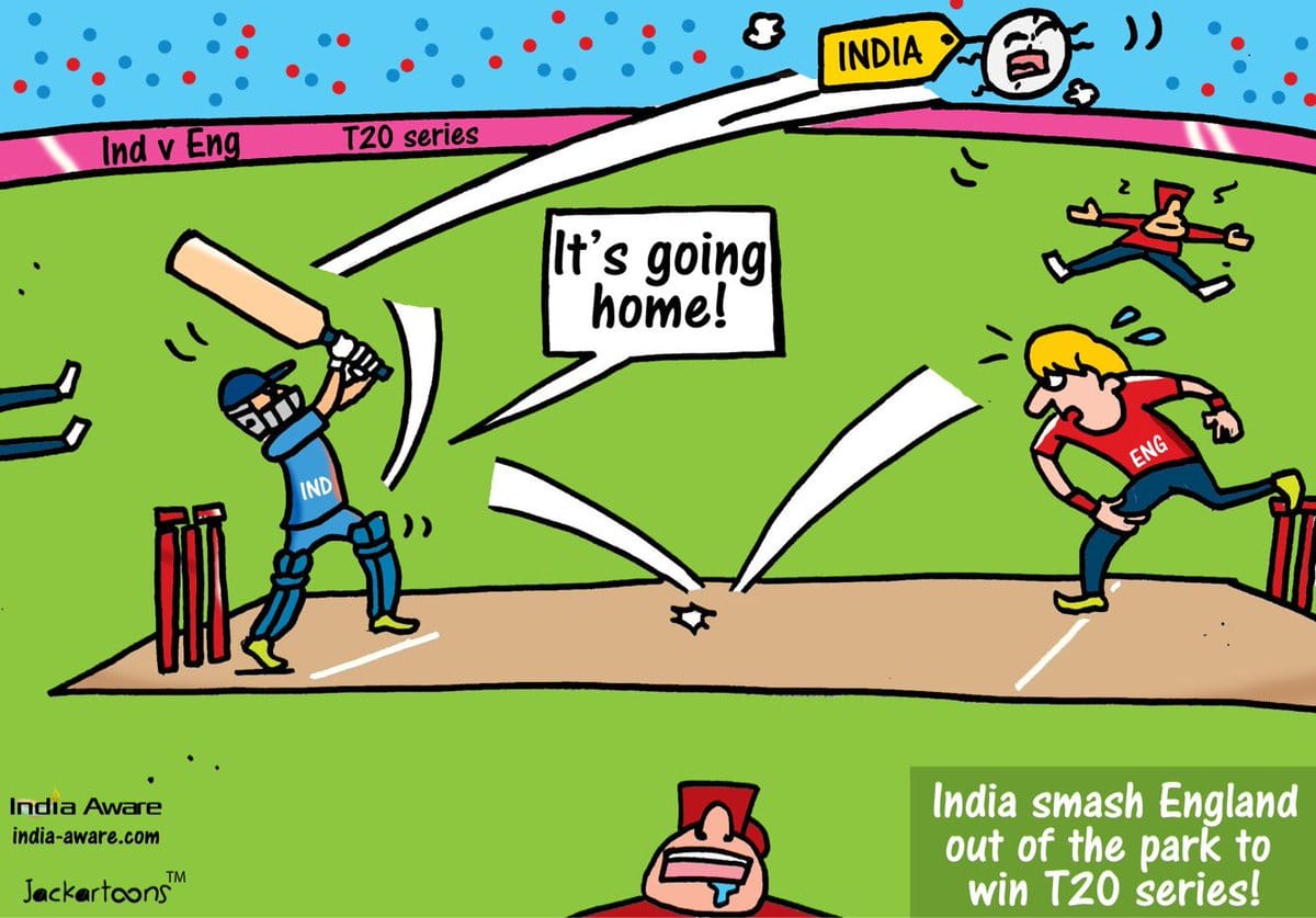 संकेत जैक ने भारत-इंग्लैंड की टी -20 सीरीज़ में भारत की जीत पर अपना रुख दिखाया हैं और उन्होंने ‘नारे’ पर तंज किया हैं की फुटबॉल विश्व कप में इंग्लैंड लगातार आगे बढ़ रहा हैं – यह घर आ रहा है।