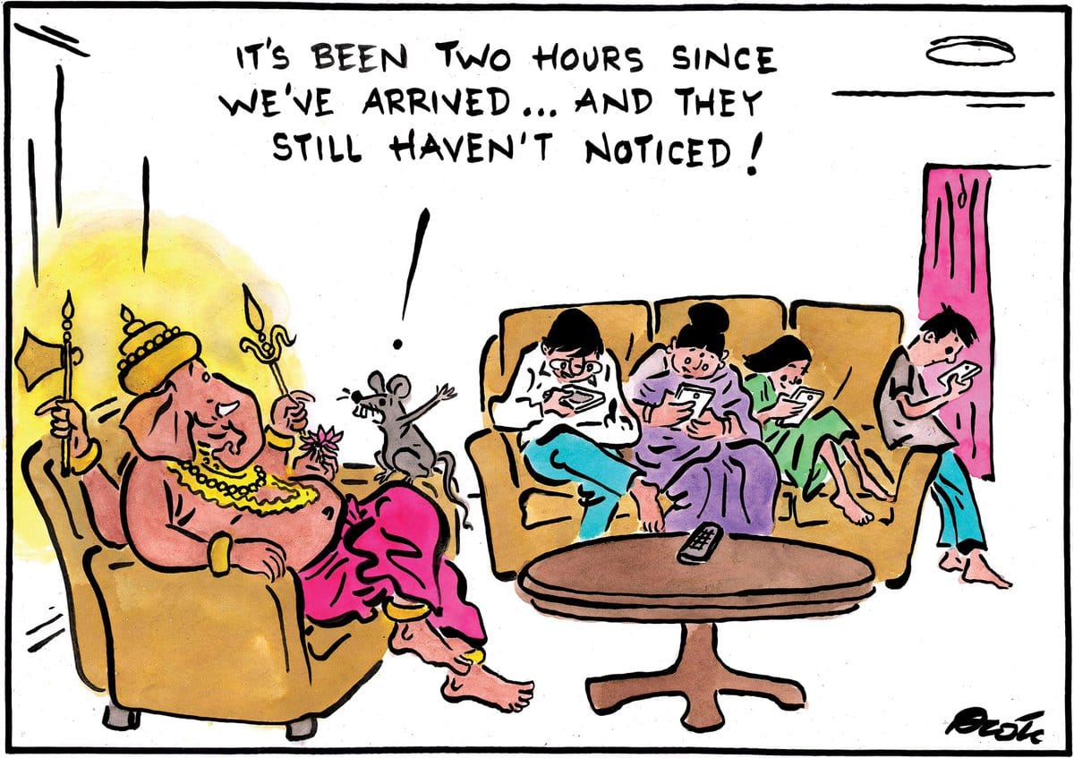 इस गणेश चतुर्थी के अवसर पर आलोक निरंतर लोगों का उनके फोन के साथ व्यस्तता पर तंज करते हैं।