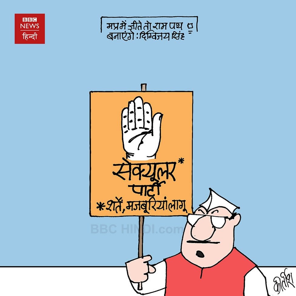 बीबीसी हिंदी में कीर्तीश भट्ट ने मंगलवार को दिग्विजय सिंह की टिपण्णी पर कटाक्ष किया .उन्होंने कहा था की अगर वो सत्ता में आएंगे तो मध्य प्रदेश में राम -पथ बनवाएंगे.जबकि कांग्रेस पार्टी सेक्युलर होने का दावा करती है.मतदाताओं को वादे के पीछे हुई शर्तो पर ध्यान देना चाहिए.