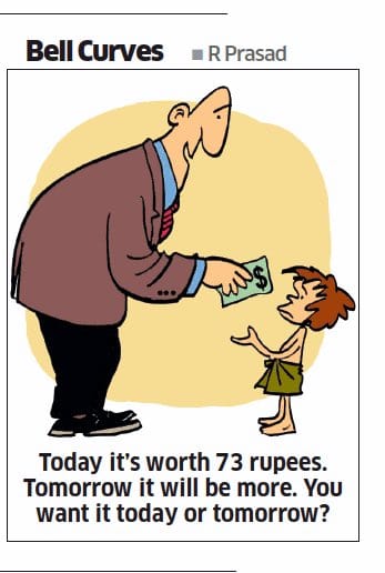 आर.प्रसाद ने रुपये के गिरते मूल्य पर टिप्पणी की है । रुपये का मूल्य गुरुवार दोपहर को 71.76 / $ (डॉलर) था।