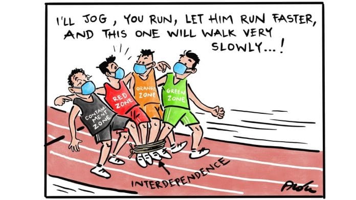 आज के फीचर कार्टून में आलोक निरंतर कोविड-19 की अंतिम सीमा तक पहुंचने के लिए सभी जोन की एकदूसरे पर निर्भरता को दर्शा रहे हैं.