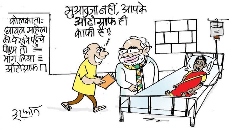 पश्चिम बंगाल के मिदनापुर में नरेंद्र मोदी के भाषण के दौरान एक टेंट गिरने के बाद, वह अस्पताल में घायलों को देखने पहुंचे यहां तक कि उन्होंने कुछ लोगो को अपना ऑटोग्राफ भी दिया ।