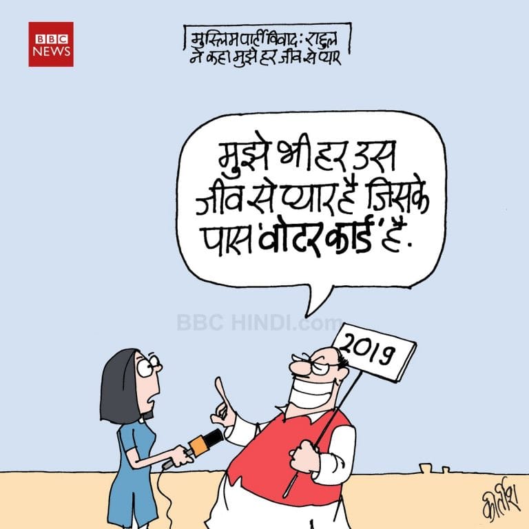 बीबीसी हिंदी में कीर्तिश भट्ट ने राहुल गांधी के हाल ही के ट्वीट का मज़ाक उड़ाया है भाजपा ने आरोप लगाया था कि गांधी ने कहा था कि कांग्रेस “मुस्लिमों की पार्टी” है इसका जवाब देते हुए उन्होंने दावा किया कि वे “सभी इंसानों” से प्यार करते है। भट्ट सुझाव देते हैं कि 2019 से पहले एकमात्र चीज जो महत्वपूर्ण है वो मतदाता कार्ड हैं।