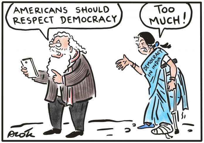 आलोक निरंतर ने अमेरिकी कैपिटल हिंसा पर प्रधानमंत्री नरेंद्र मोदी की टिप्पणी पर कटाक्ष किया कि ‘गैरकानूनी विरोध प्रदर्शनों के माध्यम से लोकतांत्रिक प्रक्रिया की अनुमति नहीं दी जा सकती है.’ यहां तक कि एनआईटीआई के सीईओ अमिताभ कांत ने कहा था कि भारत में कठिन सुधार करना मुश्किल है. जैसा कि ‘बहुत अधिक लोकतंत्र है.’