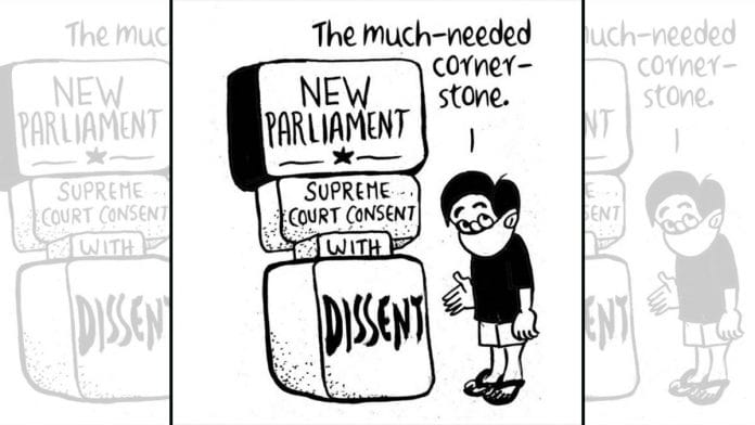 आज के फीचर कार्टून में, ई.पी. उन्नी ने सुप्रीम कोर्ट के तीन जजों की बेंच ने केंद्रीय विस्टा परियोजना को 2: 1 बहुमत से मंजूरी को चित्रित करते हैं.
