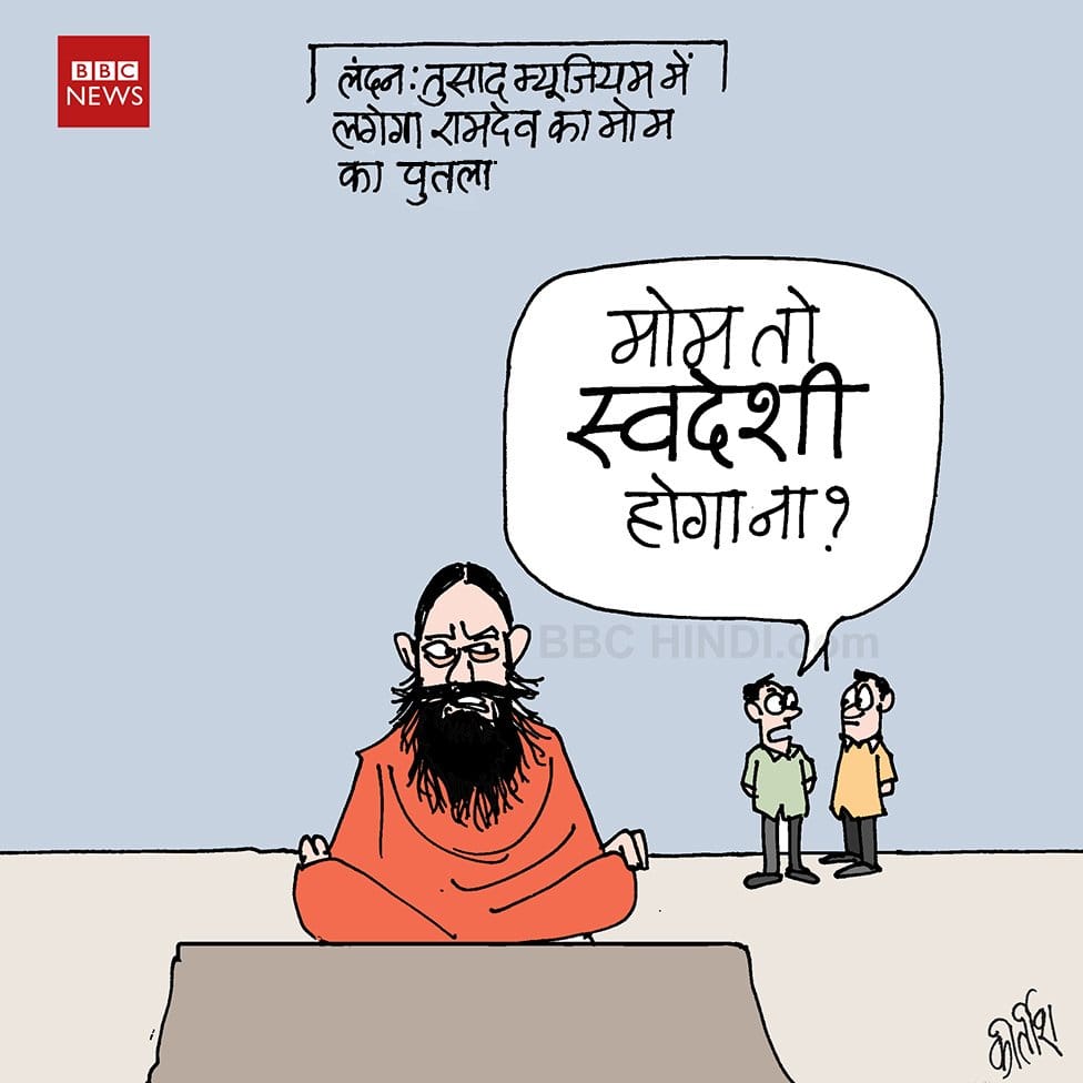 कीर्तिश भट्ट ने बहुत ही प्रफुल्लित तरीके से अपने कार्टून में दिखाया है की बाबा रामदेव की मोम की प्रतिमा तुसाद म्यूजियम में लगेगी ।