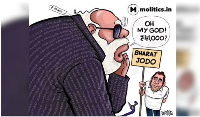 आज के कार्टून में सतीश आचार्य इशारा करते हैं कि कैसे भारतीय जनता पार्टी के एक ट्वीट, जिसमें कांग्रेस सांसद राहुल गांधी पर भारत जोड़ो यात्रा के दौरान ‘महंगी’ टी-शर्ट पहनने की बात कही गई, ने बीजेपी और कांग्रेस के बीच वाकयुद्ध शुरू कर दिया.